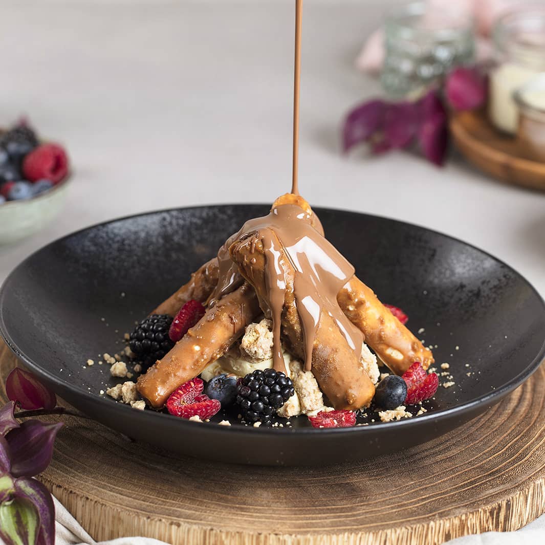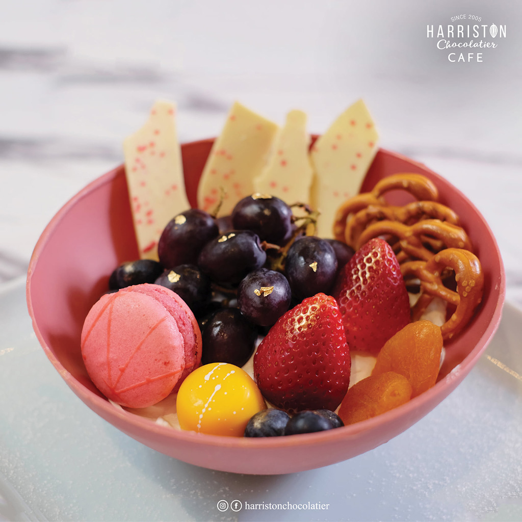 Have you ever had a dessert so good that you leave nothing behind? This is what happens when you eat at Harriston’s Chocolatier Signature Cafe, and try their Chocolate fondue! Filled with a colourful selection of dipping fruits and snacks and an edible chocolate bowl (yum!) filled with goodies like pretzels, strawberries, apricots, praline, macaroons, and mixed berries dipped in a choice of dark, milk or ruby chocolate dipping sauce. You’ll definitely polish this dessert off, no problem!